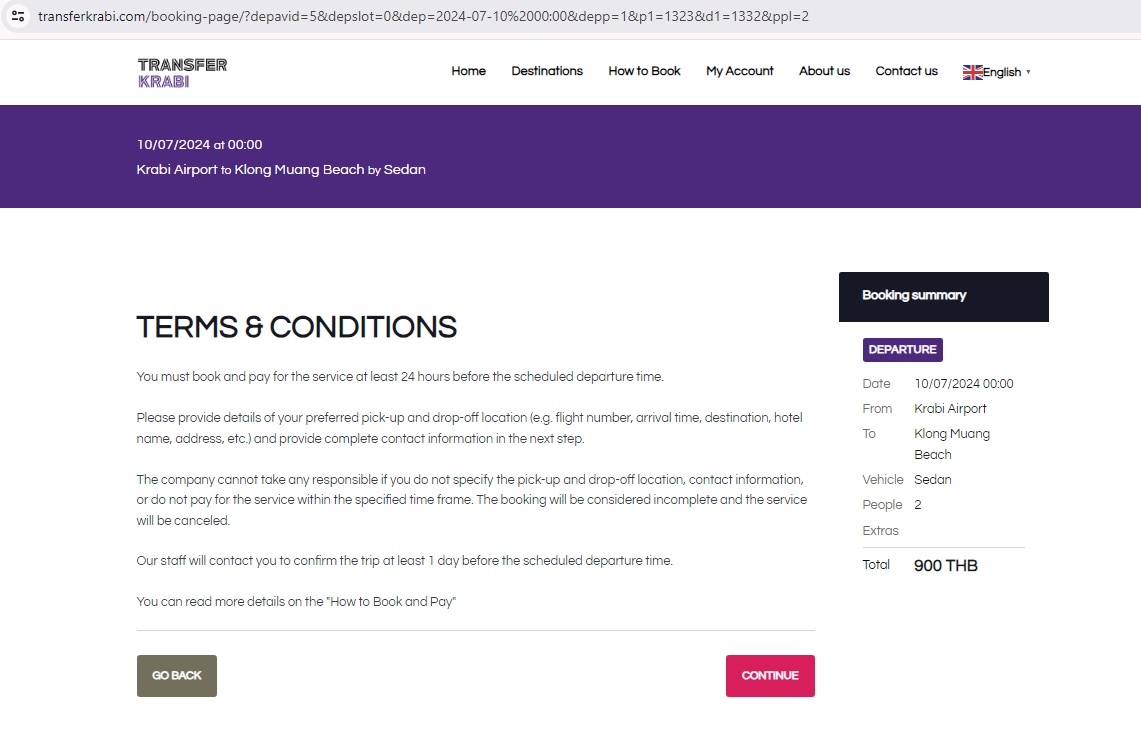 Click "CONTINUE" to preceed your booking.